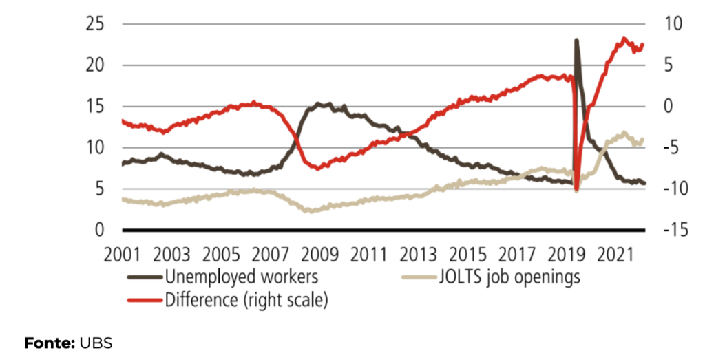 Nesse contexto, as esperanças de uma mudança de rumo na política do Fed no curtíssimo prazo começaram a perder força devido ao fato de o Banco Central ter deixado claro que quer ver um melhor equilíbrio entre oferta e demanda da mão de obra. Em sua coletiva de imprensa após a reunião do FOMC de fevereiro, o presidente do Fed, Jerome Powell, descreveu a situação do mercado de trabalho como “extremamente ajustada”. Portanto, será necessário ter mais evidências de que esse equilíbrio está sendo alcançado, antes de pensar em interromper o aumento dos juros.