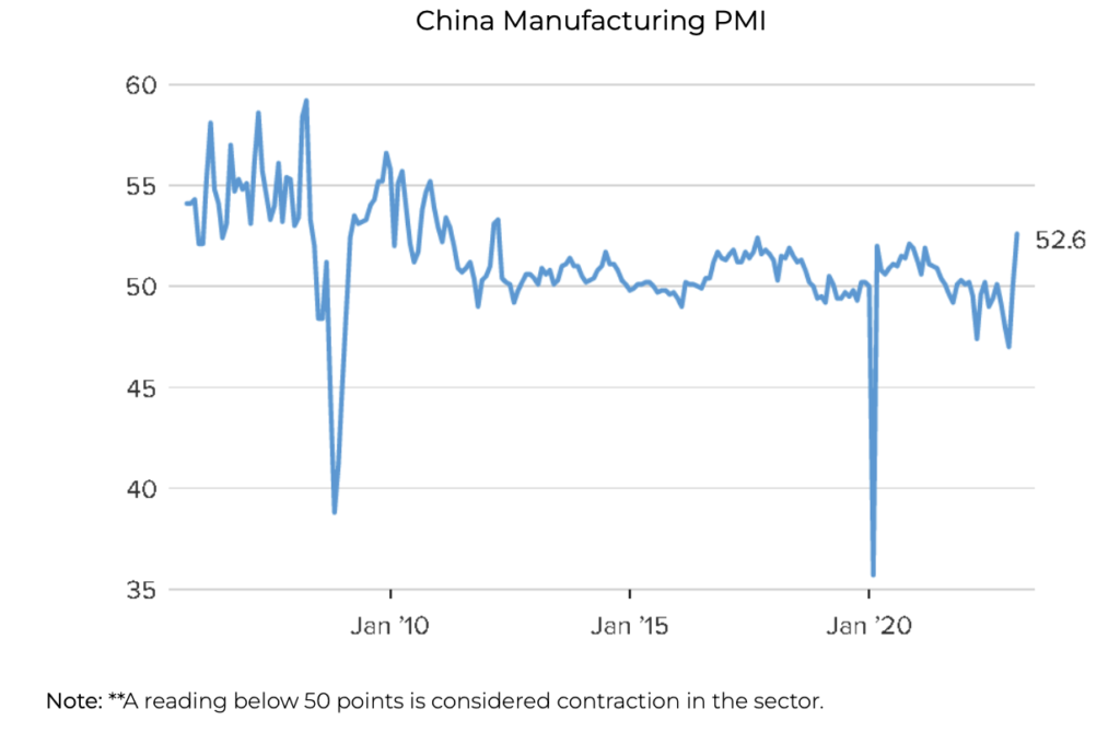 The official February manufacturing activity (PMI) report in China advanced strongly and remained in the field, indicating expansion (+52.6 points*). This result was better than expected and represented its highest reading since April 2012.
